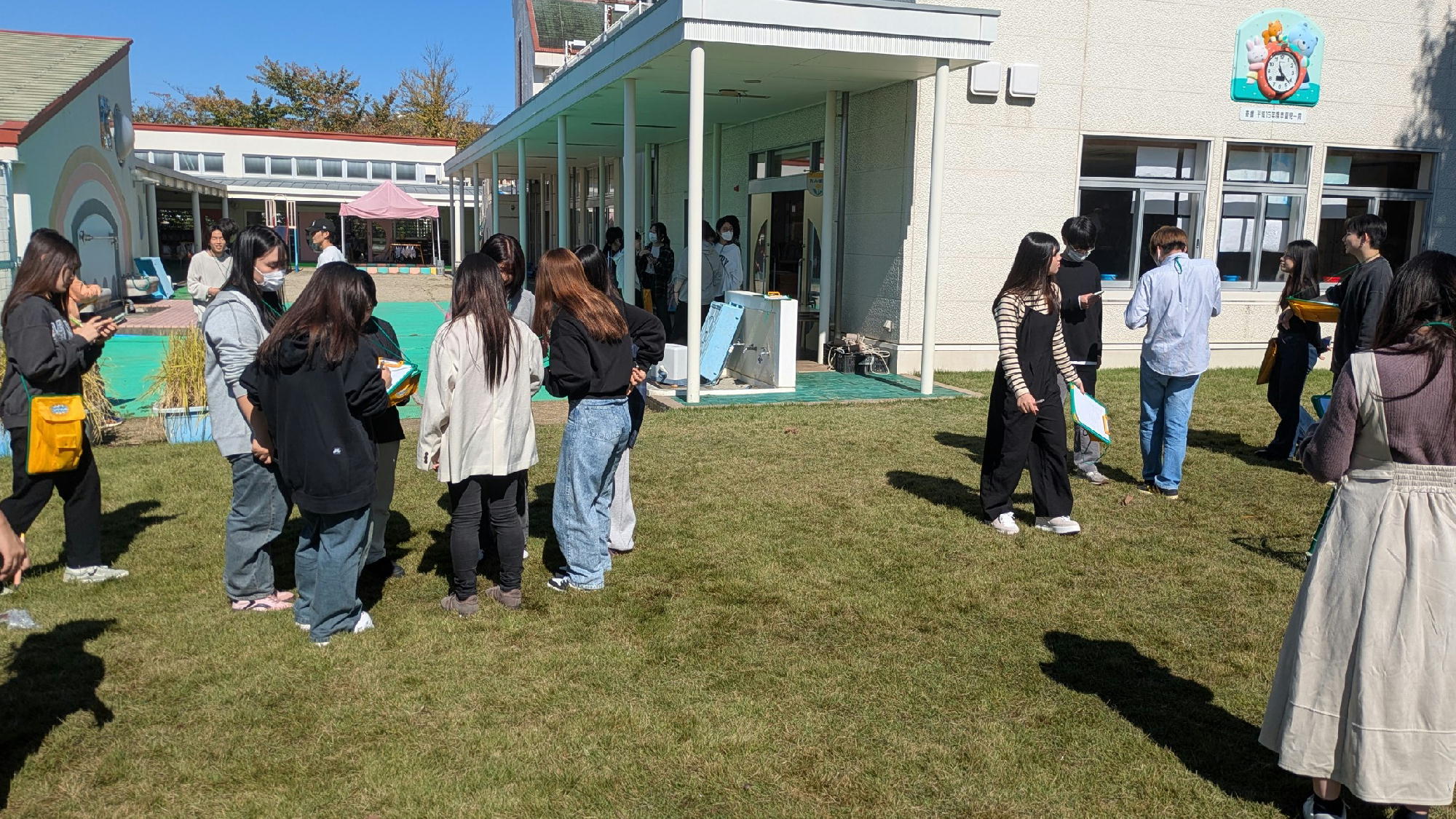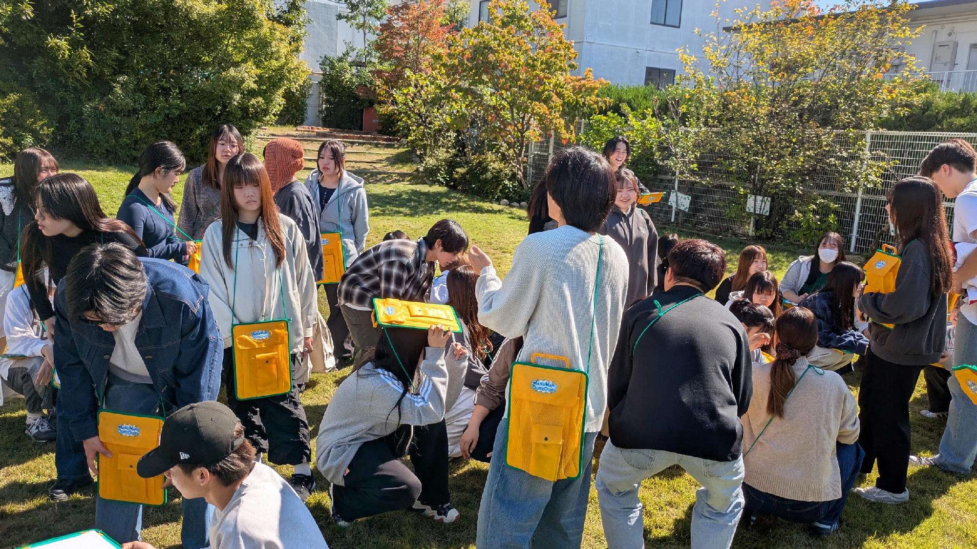 こども教育学科2年生の授業「生活科研究Ⅰ」です。 この日のテーマは、「秋をさがそう!」。 学生たちは帝塚山幼稚園の園庭におじゃまして、秋を探します。 「カキだ!」 「ミカンだ!」 「どんぐりだ!」 「葉っぱが赤くなってる!」 子どもたちの気分になって、思わず声がはずみます。 見つけた“秋”をカメラにおさめ、教室に戻ってからスケッチします。 季節の変化を“感じる力”を育てる――そんな授業です。 © 2019 Tezukayama University Nara こども教育学科 奈良 奈良県 帝塚山大学 教育学部