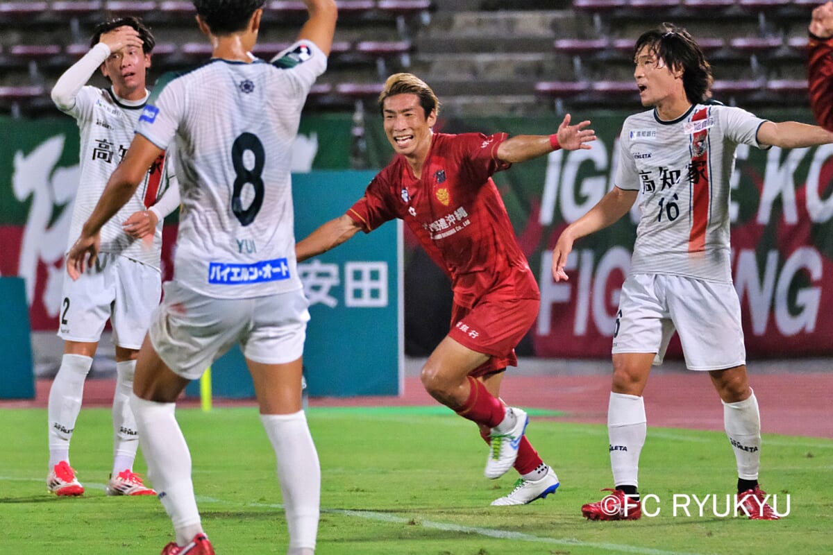 前半21分、右ポケットに進入した永井颯太の正確なクロスに左足で合わせ、ネットを揺らす。琉球加入後初ゴール。待ち焦がれた瞬間だった。