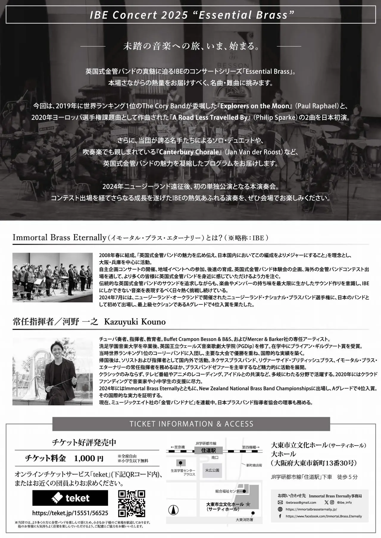 入場料は1000円となっており、Immortal Brass Eternally(イモータル・ブラス・エターナリー)公式ホームページ内の「オンラインチケットサービスteket」よりご購入頂けるようです。