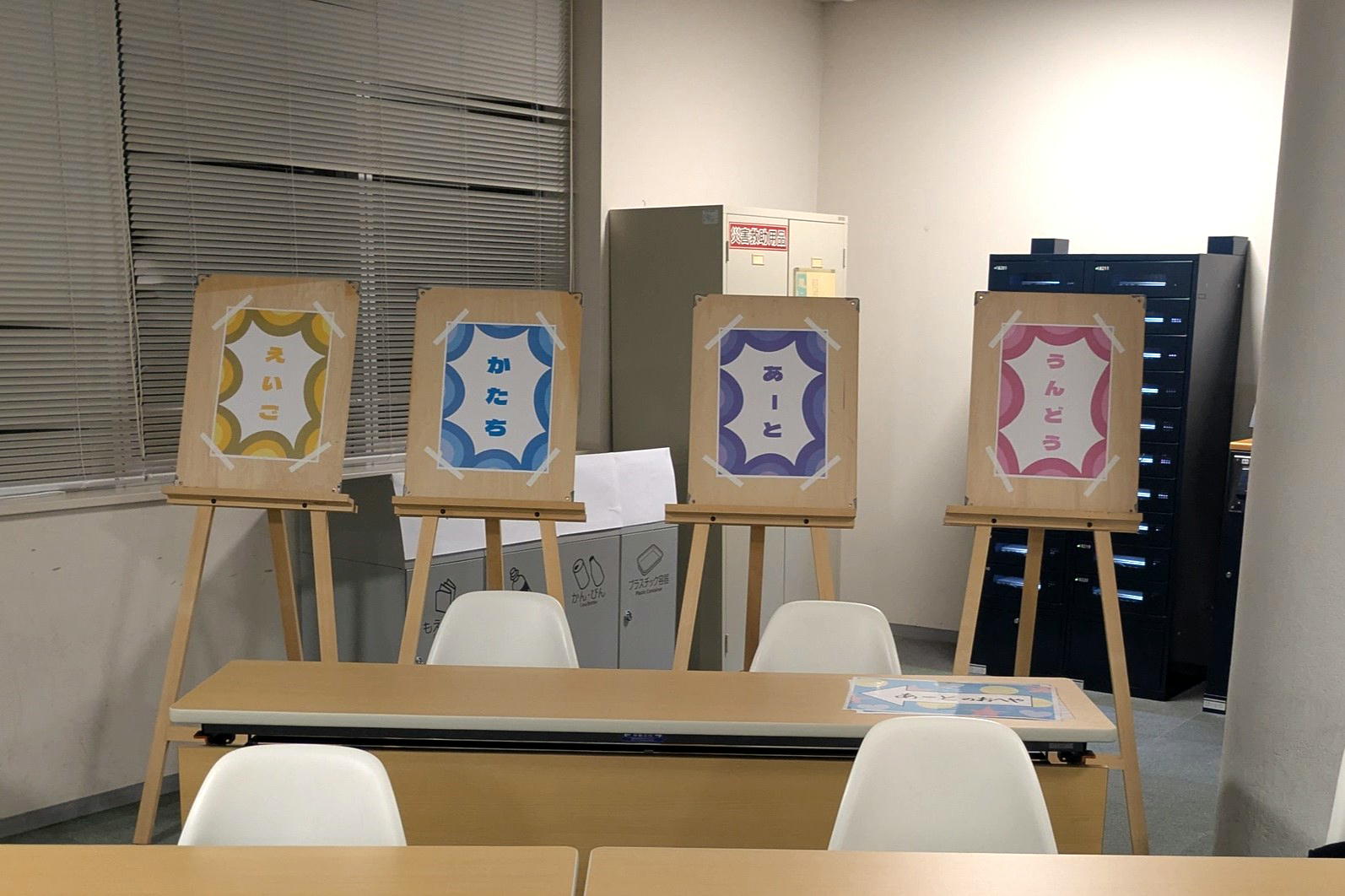受付、4つのお部屋、おはなしかい、案内表示、飾りつけ、……。