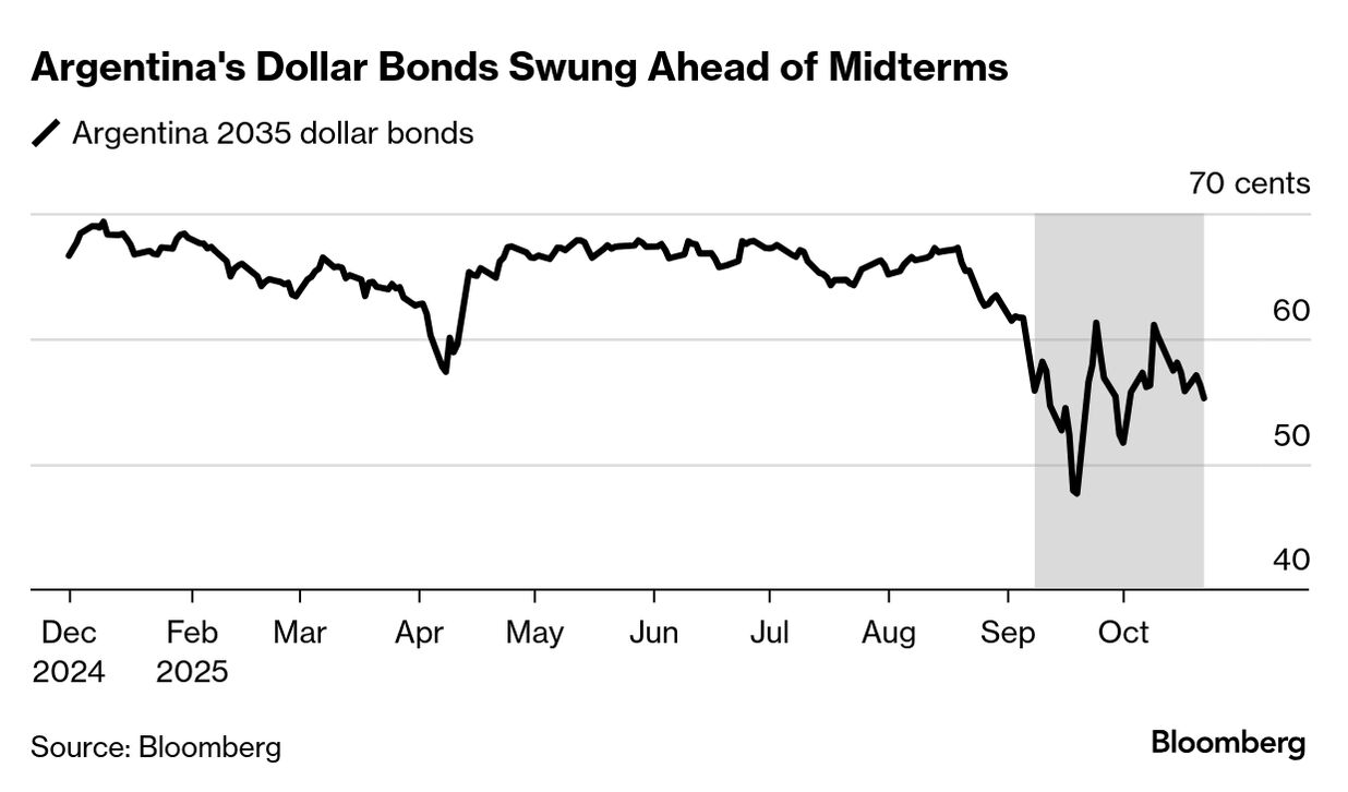 選挙結果を受けて、米国からの支援も続きそうだ。トランプ政権はアルゼンチン中央銀行と200億ドル(約3兆1000億円)規模の為替スワップ協定を締結し、ペソ安定化を支援。さらに、追加の200億ドル融資枠を巡り複数の銀行と協議していた。