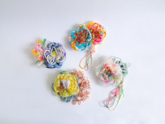 毛糸フェルトで作るブローチ好きな毛糸を選び、針で刺して、世界に一つだけのブローチを作ります。