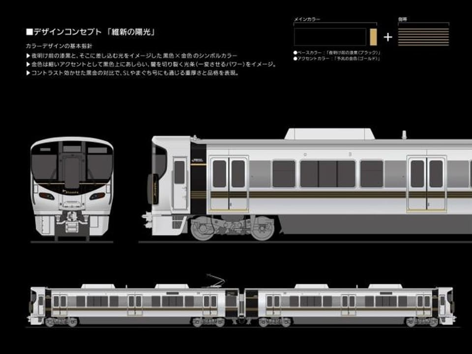 愛称は「Kizashi」で、古語で「山口」が物事の始まりや兆しを意味することから命名。黒をベースに金色の帯を配したデザインは「維新の陽光」をテーマとし、「夜明け前」のイメージや沿線風景、SLの重厚な品格も表現している。