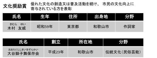 令和7年度和歌山市文化表彰の受賞者が決まりましたので、お知らせします。