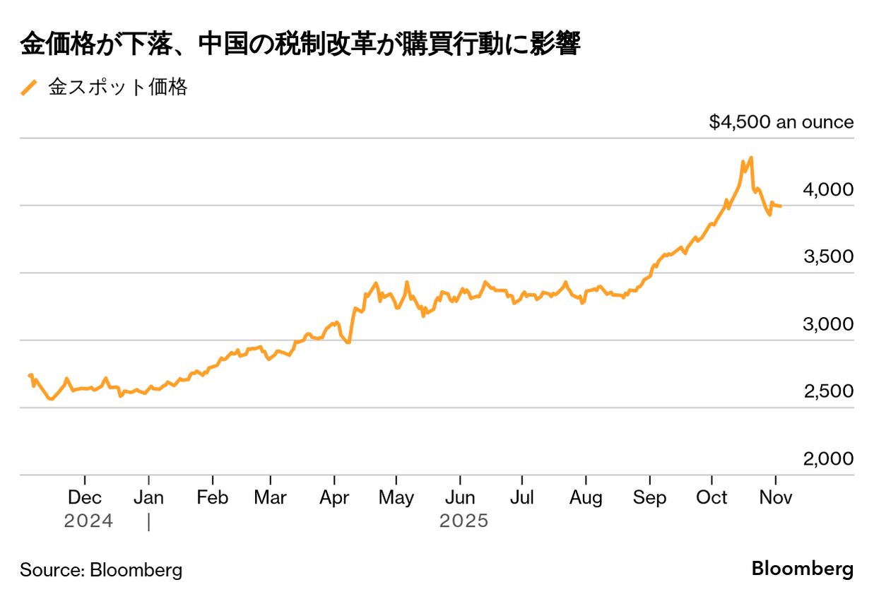 原題:Gold Drops Back Below $4,000 After China Ends Tax Incentive (抜粋)