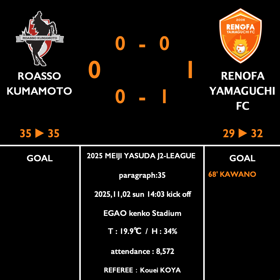 勝点差は6。ここで勝点3を積めばその差を9に広げ、残留確定に向けて大きく前進できる可能性があった。しかし熊本はゲームを通じて自分たちの強みを出せず、シュート5本で無得点に終わり、後半、左サイドを破られる形で失点しての連敗。順位こそ17位のまま変わっていないが、降格圏の18位山口との勝点差は3に縮まり、厳しい状況に追い込まれた。