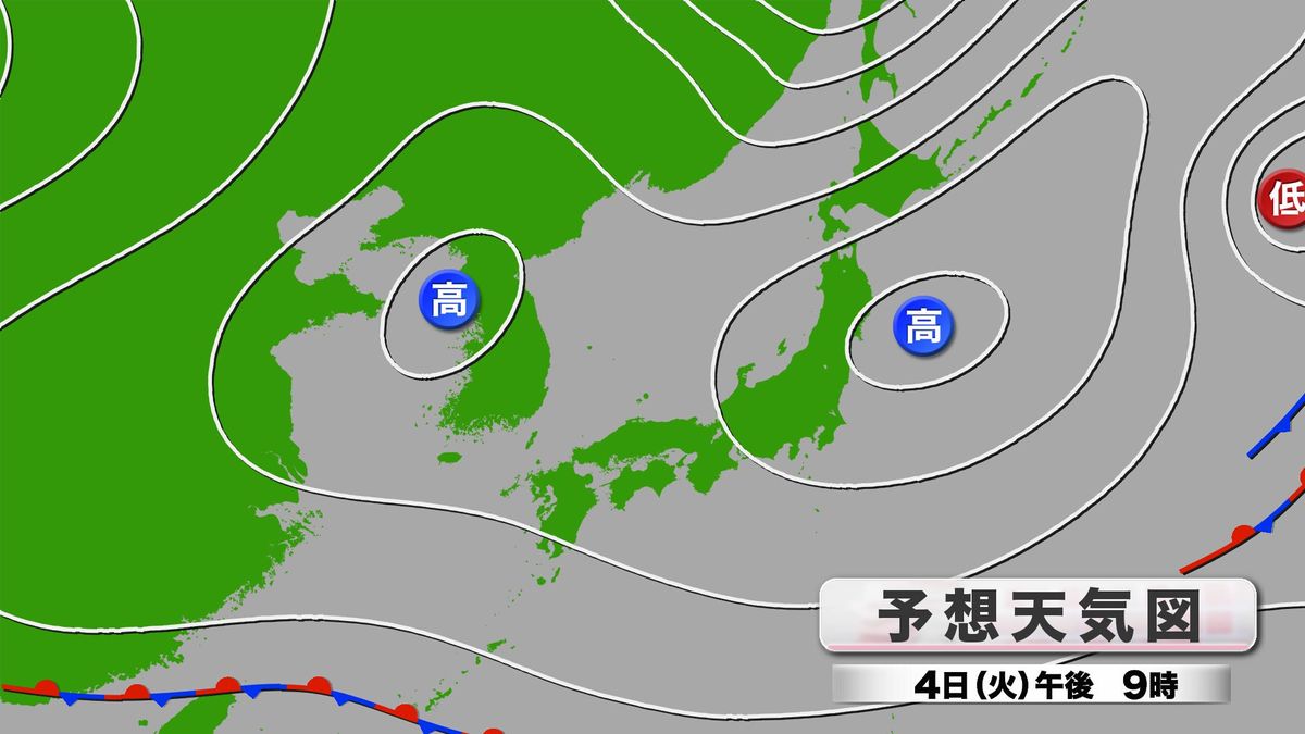 きのう3日(月)まで冬型の気圧配置が続いた影響で、県内には冷たい北風が続々と流れ込みましたが、きょう4日(火)はこの先、大陸からの高気圧が日本付近をしっかりと覆う予想です。
