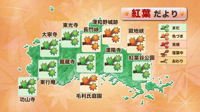 この紅葉情報はこれからの天気コーナーの中で随時お伝えしていきます。最新情報を確認しながら、今シーズンの紅葉をぜひ楽しんで頂ければと思います。