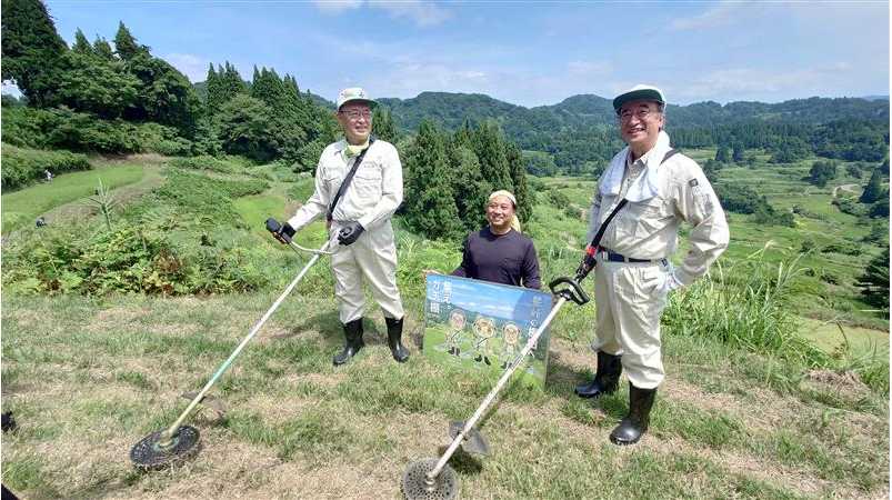 企業や団体が参加する「棚田みらい応援団」では、8地区15回にわたり、田植えや稲刈りなどの活動を行いました。2025年度は、農作業でも過酷とされる草刈活動を行う、個人参加型の「ガチ棚」の取組を新設しました。8月には、花角知事が草刈り機を使用して活動に参加し、「棚田を守るという強い思いを持った方々がさらに集まってもらえるよう、新潟県として応援していきたい」と述べています。