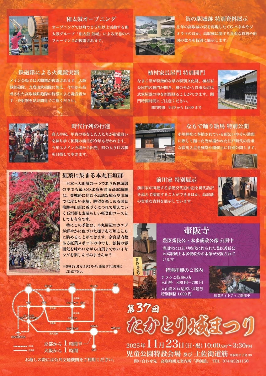 11月23日(日・祝)、高取町児童公園および土佐街道(奈良県高取町)において「第37回たかとり城まつり」が開催されます。入場無料。