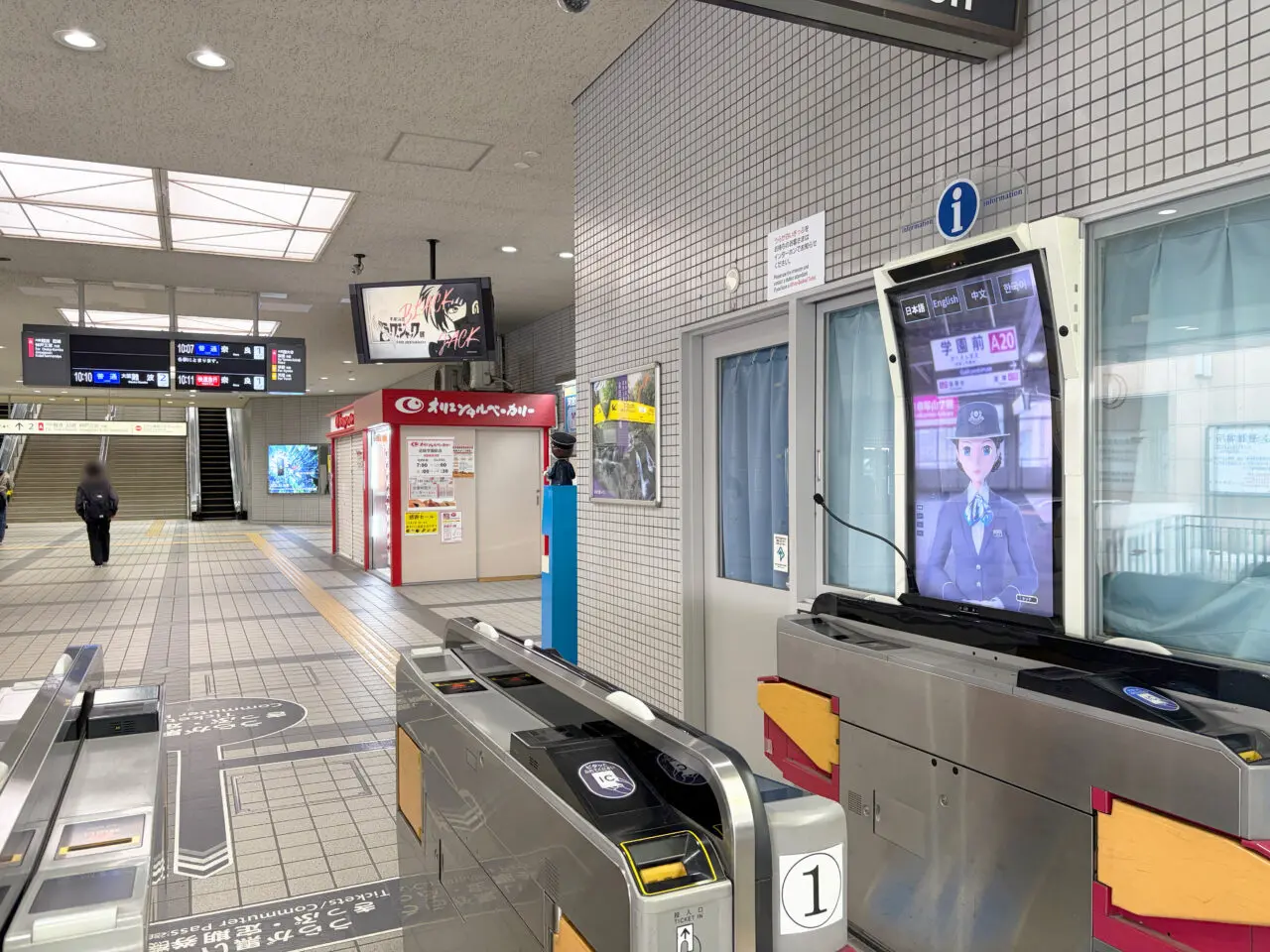 駅員さんによると、西大寺のロボット実証により得られた知見が、学園前駅と白子駅(三重県鈴鹿市)に設置している「駅AI案内サイネージARISA」さんに引き継がれているとのこと。