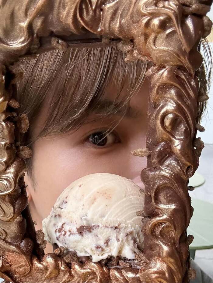 チョコフレーム&アイス越しに、岩田さんがこちらを見つめている姿に、なんだかクスッと笑ってしまいますね。