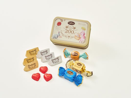 カファレルの人気商品を堪能できる28粒アソートセット。食べ終わった後は、ペンや、メモ帳