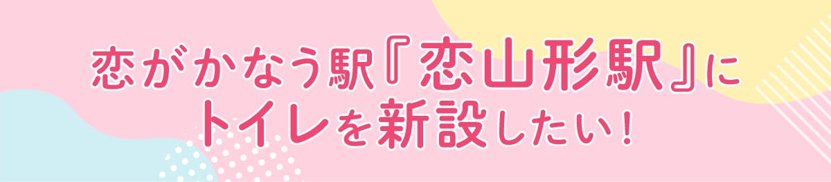 「誰もが安心して“恋がかなう駅”を訪れることができるようにしたい。」 今回は、そんな恋山形駅を「安心して訪れることができる恋の聖地」にするため、トイレの新設を目指すプロジェクトを立ち上げました。