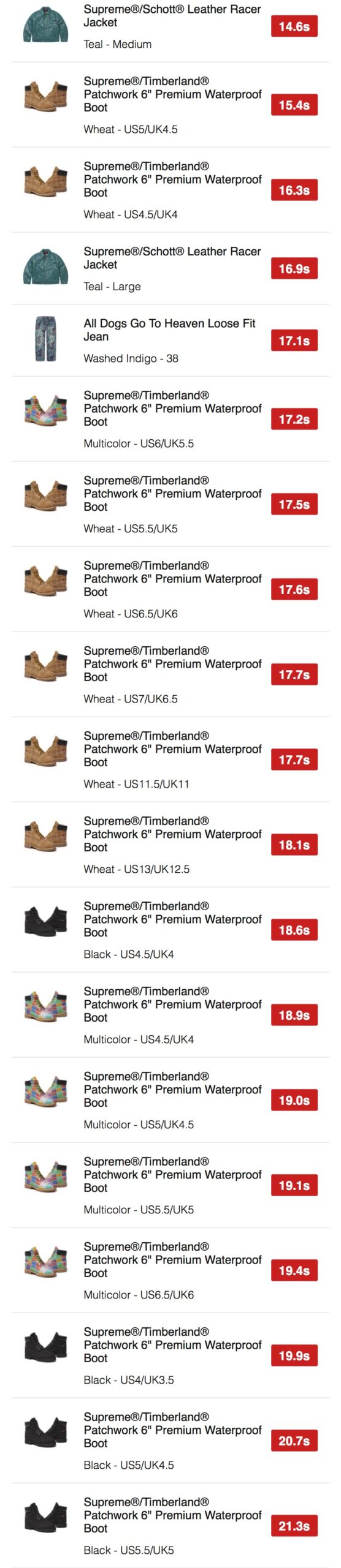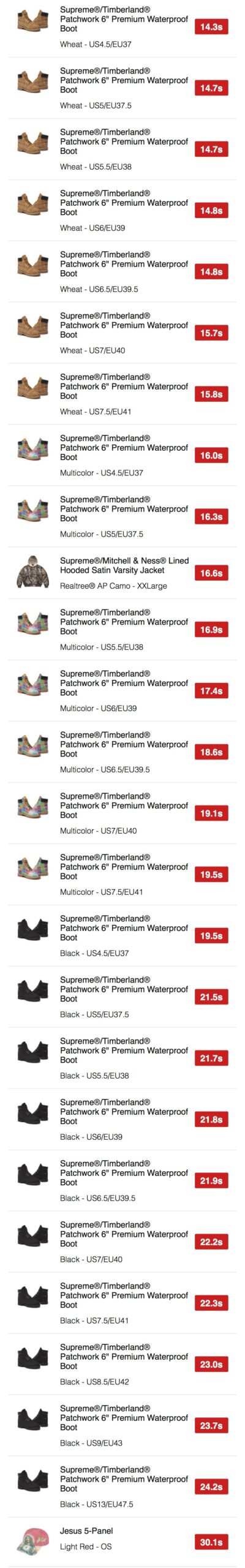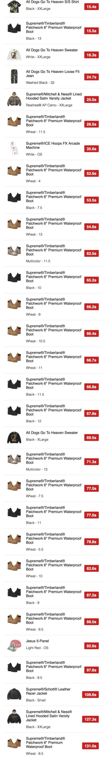 シュプリーム x ティンバーランド 2025年秋冬コレクションWEEK11 海外オンラインの完売スピードランキングが公開。【2025FW】
