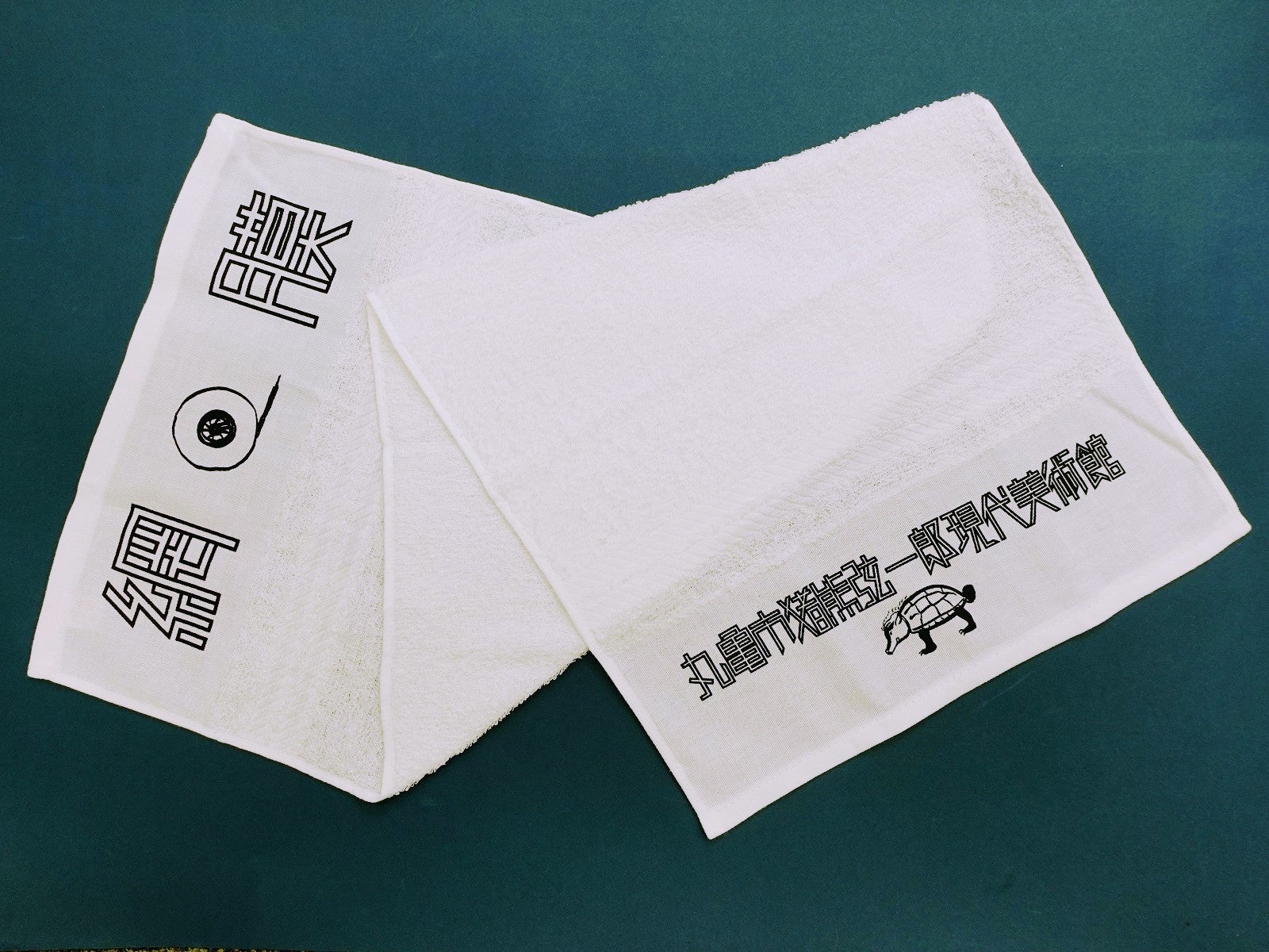 タオルは四国の特産品。網膜のロゴ入りタオルです。温泉で使いたいですね。プリントされているキャラは頭がイノシシ、胴体がカメ、手足がクマのようです。猪と熊はまさに猪熊さんですが、亀は丸亀かな。後で聞いたら、イノカメグマは大竹さんがMIMOCAをイメージして作ったオリジナルキャラクターだそうです。タオルはここでしか買えないので、ぜひ展示を見に行ってお求めください。