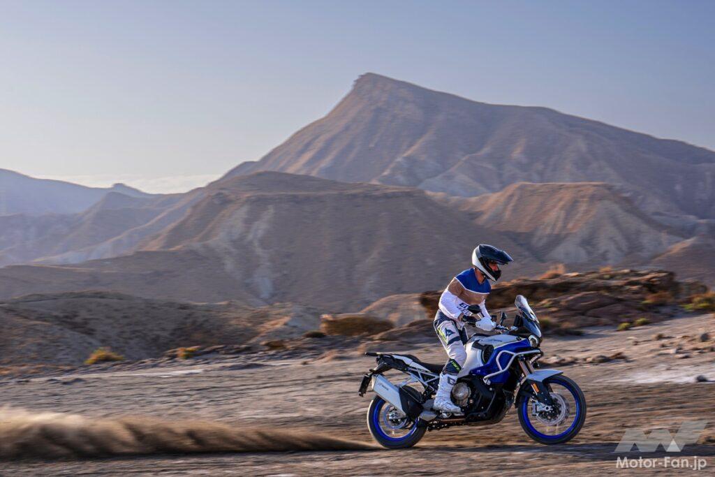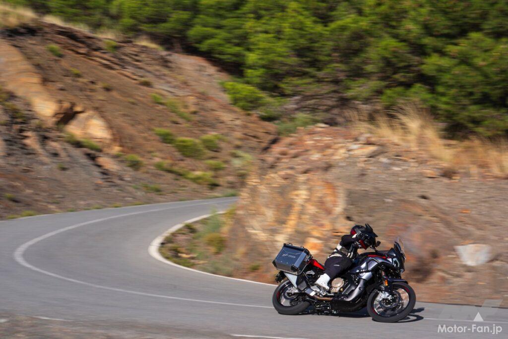 電子制御系では6軸IMUがリアルタイムに車体挙動を解析し、コーナリングABS(RLM付き)、トラクションコントロール、エンジンブレーキ、スロットルレスポンスを統合管理。ライディングモードは「Urban」「Touring」「Off-Road」「Custom All-Terrain」の4種を用意する。7インチHD TFTメーターはWi-Fi/Bluetooth接続に対応し、MV Rideアプリ経由でナビゲーションや走行記録、コミュニティ共有も可能だ。