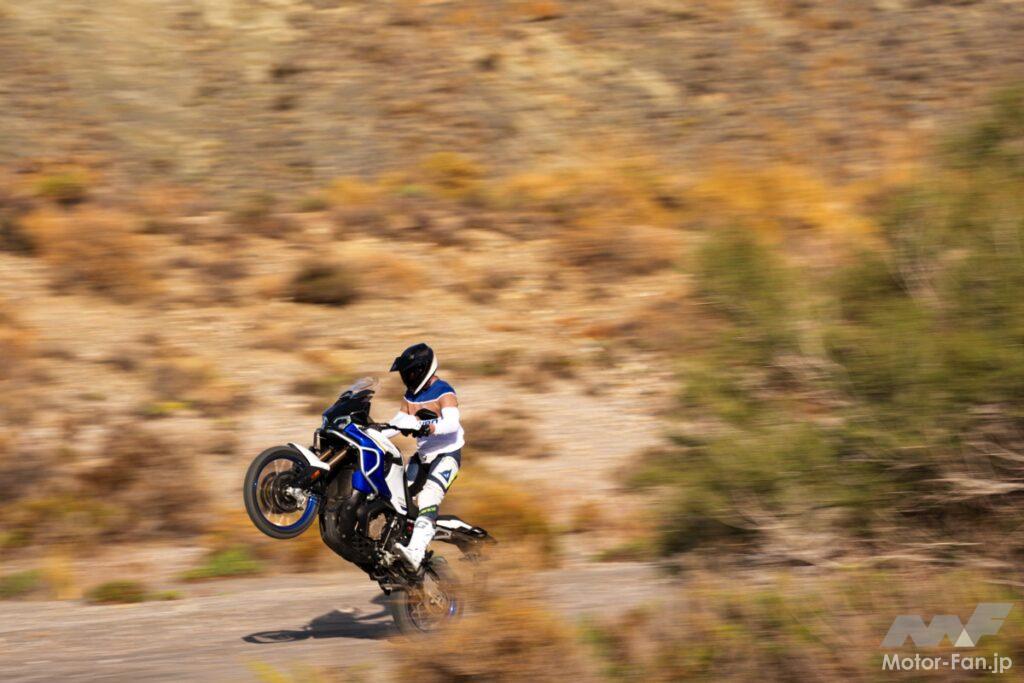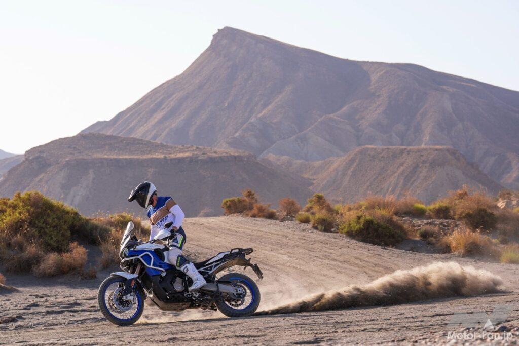 シート高は850〜870 mmの可変式で、最低地上高は230 mmに達する。制動系はBrembo Stylemaキャリパーと320 mmフローティングディスクを前に、265 mmディスクを後に備え、どんな環境でも確実な制動力を発揮する。