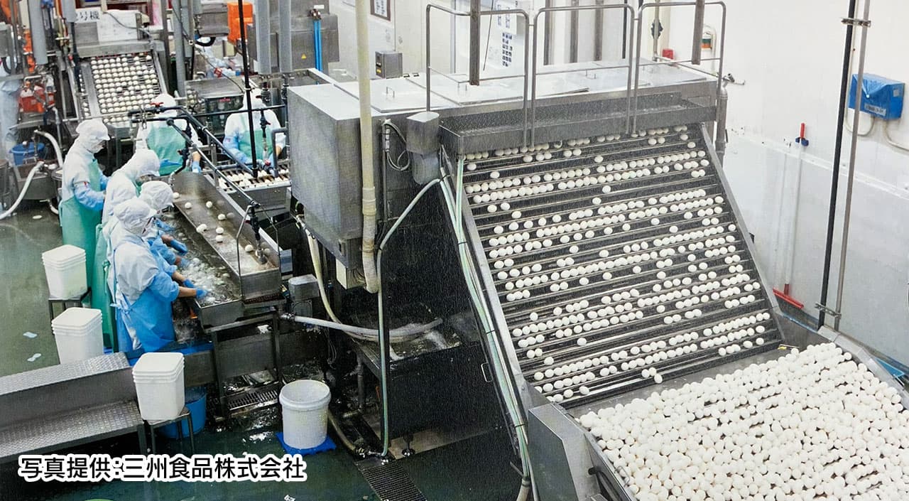 ▼14日(金) 全国のコンビニなどに年間7,000万個!国内屈指のゆで卵工場