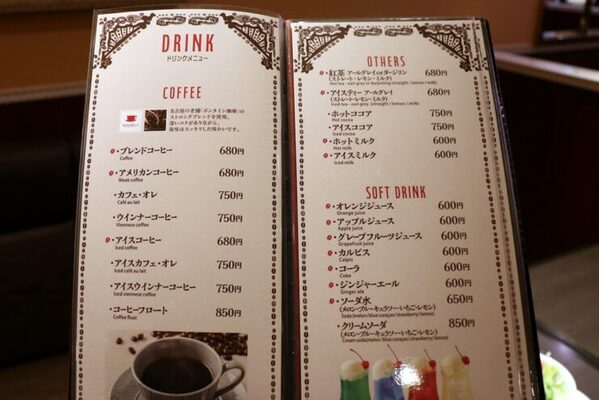 ドリンクは、コーヒー各種のほか、紅茶、ココア、ミルク、ジュースなど、豊富なラインアップ。名古屋の喫茶店らしく、モーニングの時間帯(7:00~11:00)は、ドリンク代のみで「ゆで卵」と「トースト(ハーフ)(小倉/バター/ジャム)」がついてきます。