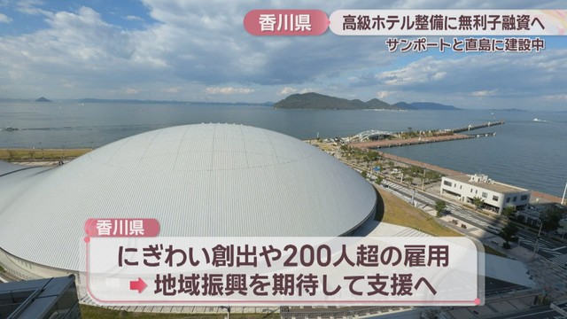 サンポート高松と香川県の直島に外資系の高級ホテルを整備する事業に香川県が無利子で80億円規模の融資を行う方針を固めました。