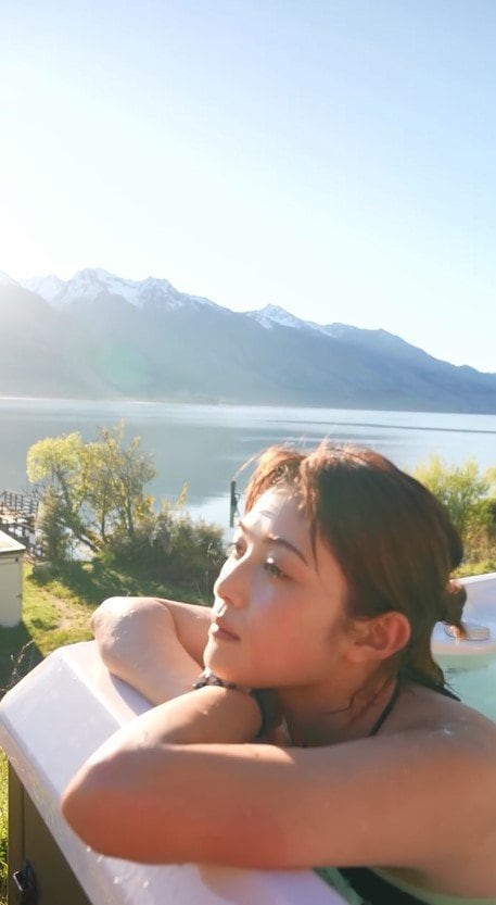 ニュージーランドの大自然の中、朝風呂につかってリラックスする姿を披露しました。