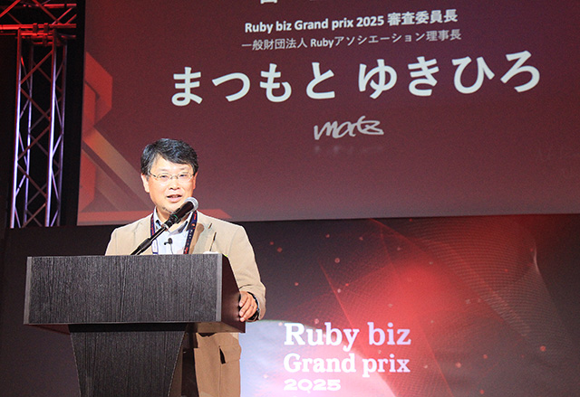 「Ruby biz Grand prix はこれまで、RubyWorld Conference の前日に開催していましたが、今年から装いをあらためて RubyWorld Conference のなかで表彰式を実施することとなりました。