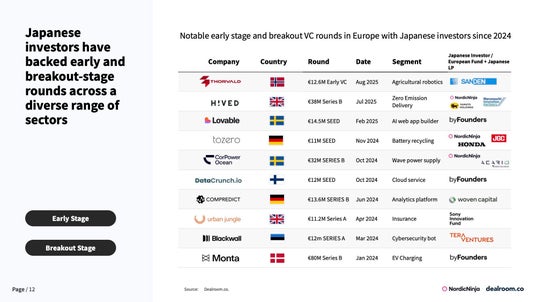 日系では最大規模の欧州ベンチャーキャピタル、NordicNinja VC Limited (以下NordicNinja)は、この度スタートアップやテックエコシステムに関する世界有数のデータベースを運営するDealroomと共同で、日本企業と欧州スタートアップ投資の最前線をまとめたレポート『Japan – Europe: A Rising Tech Alliance』を発表しました。