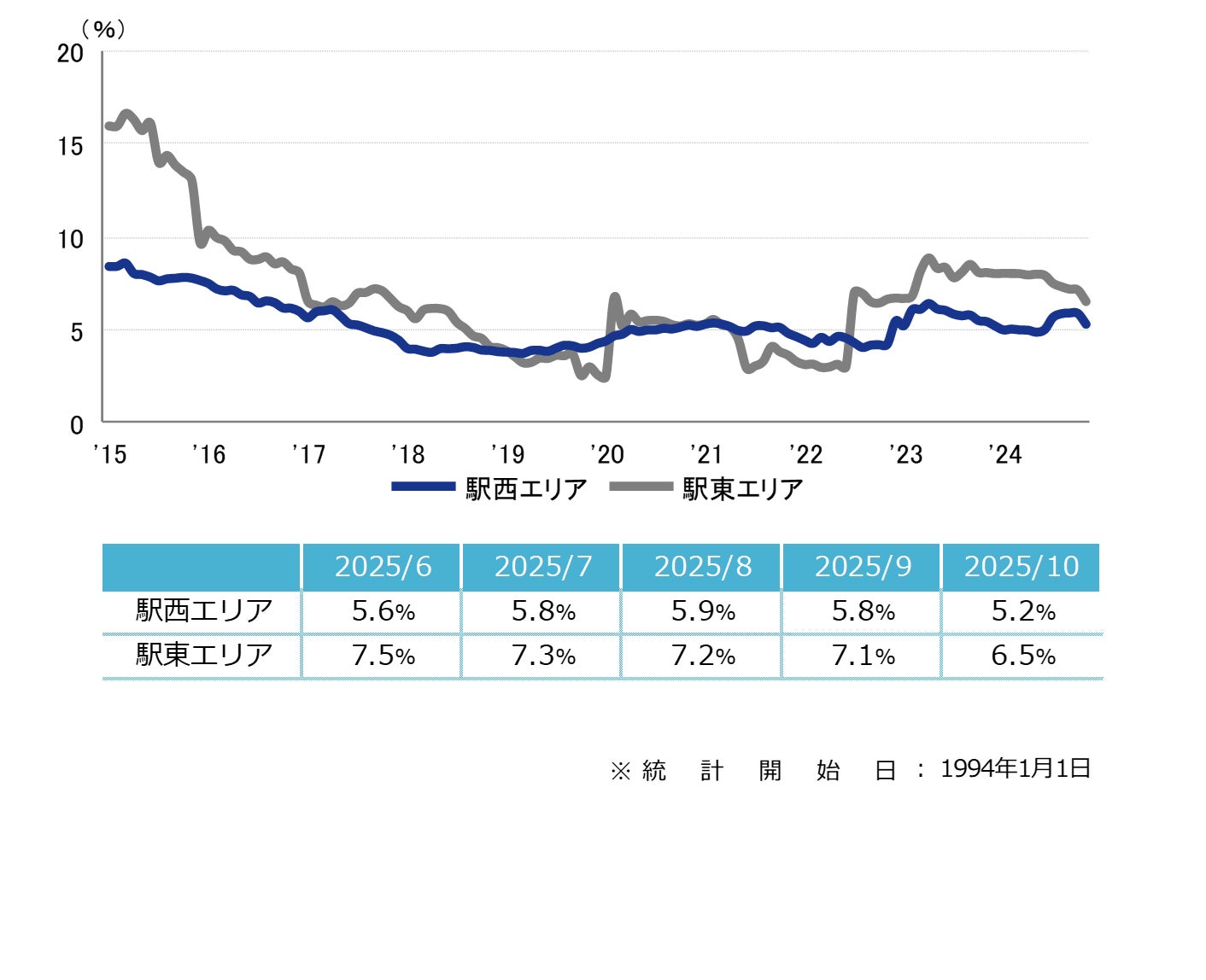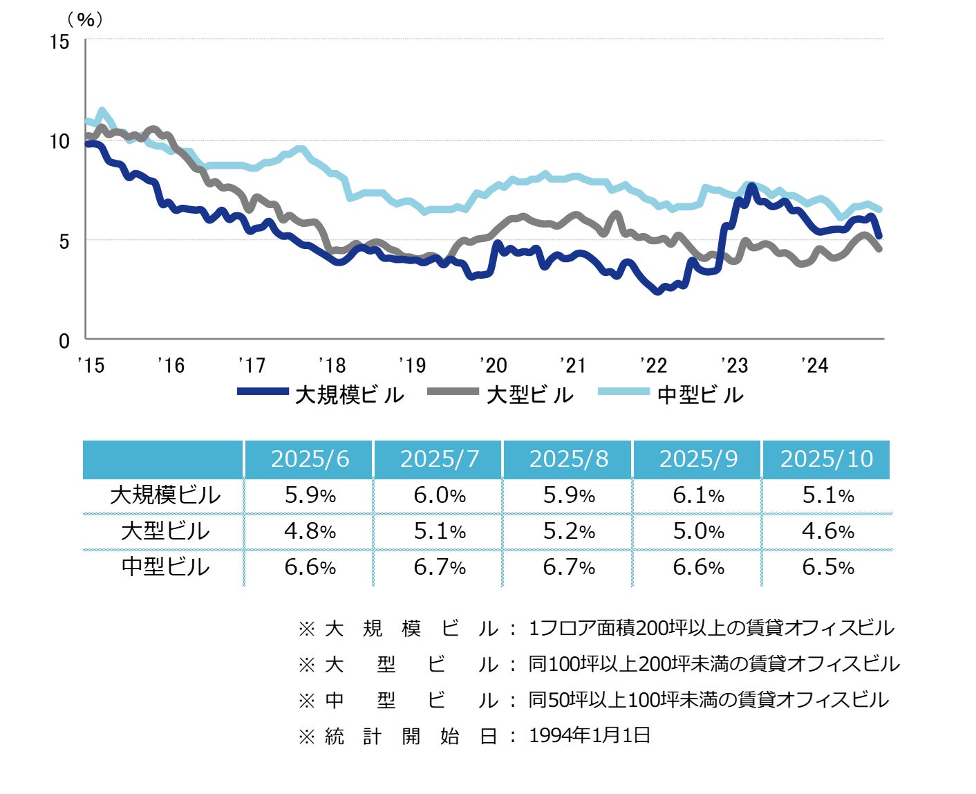 空室率 前月から大幅な低下 「大規模」は1.0ポイントの低下