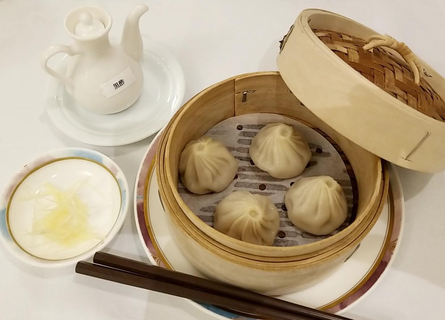 さらに「小籠包」は、もちもちの皮からあふれ出る肉汁がたまらない! うっかりかじりつくと、中の肉汁が飛び出ます。付け合わせの黒酢と針生姜の爽やかな香りが効いて、美味しかったですよ。