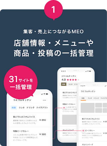 口コミコムは、国内外の口コミサイトを“もっと”売上に変える「店舗向け集客一元化プラットフォーム」です。