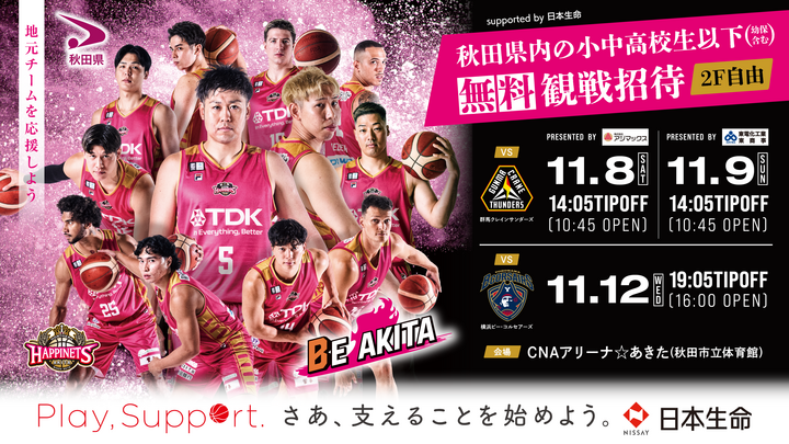 県内の子どもたち&小中高生は、秋田ノーザンハピネッツのホームゲームに全員集合!