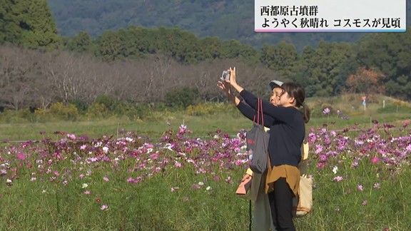 宮崎県西都市にある西都原古墳群では、毎年10月下旬から11月上旬にかけて、約6ヘクタールの花畑に約300万本のコスモスが咲き誇る。