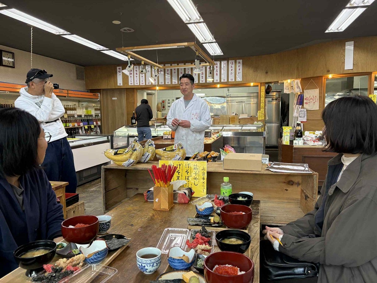棚の商品のデザインについてあれこれと会話が弾み、「このゲソ天は何味かな?」と笑い声が交わされる昼食の時間。ツアー参加者同士の距離が自然に縮まり、あたたかな交流の場となりました。