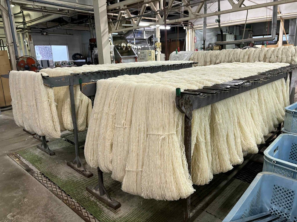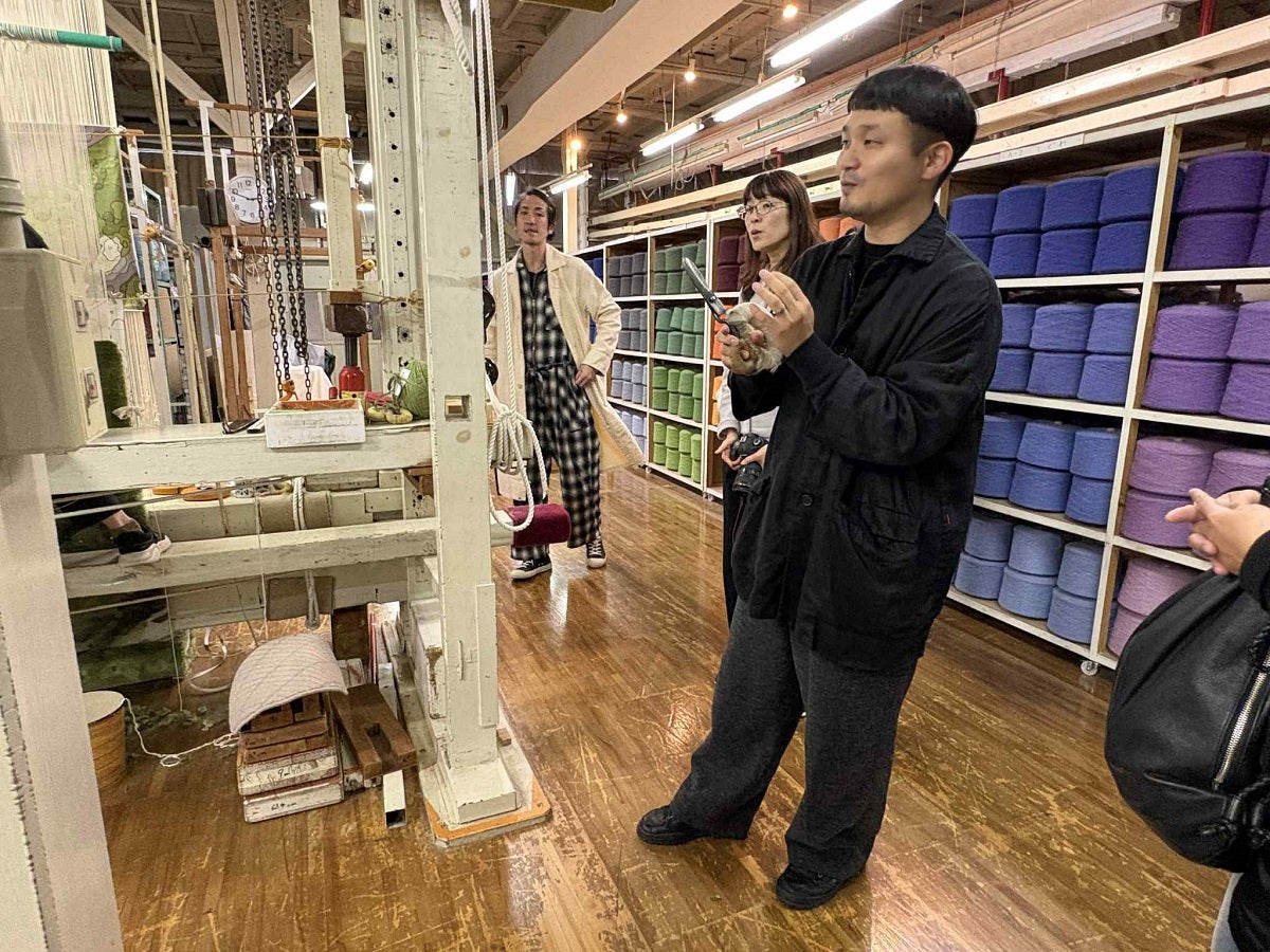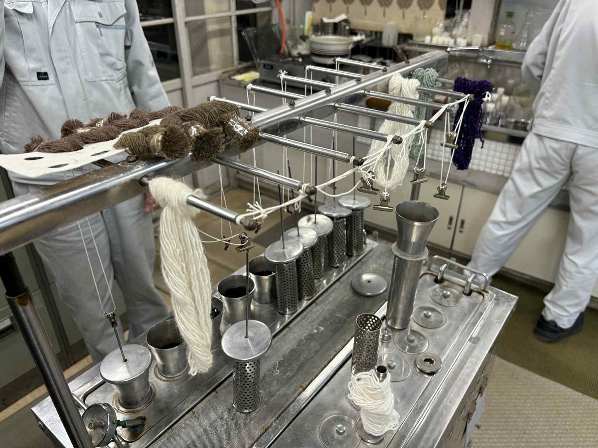 渡邊篤志さん(常務取締役)のご案内によると、日本で唯一、糸づくりから染色、織り、仕上げからアフターケアにいたるまで、すべてを自社工房で一貫管理しているとのこと。どの工程が欠けても、美しい絨毯は完成しません。