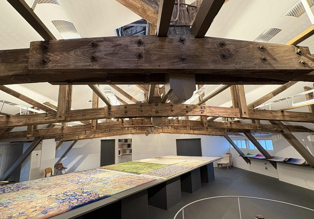 工房貴賓室では、絨毯製造の過程で残った糸を再利用し、左官仕上げされた壁紙も印象的でした。これは、現代でいう「サステナブル」の精神そのものです。持続可能という概念が一般化するずっと前から、自然や資源に敬意を払うものづくりが行われていたことが伺えます。