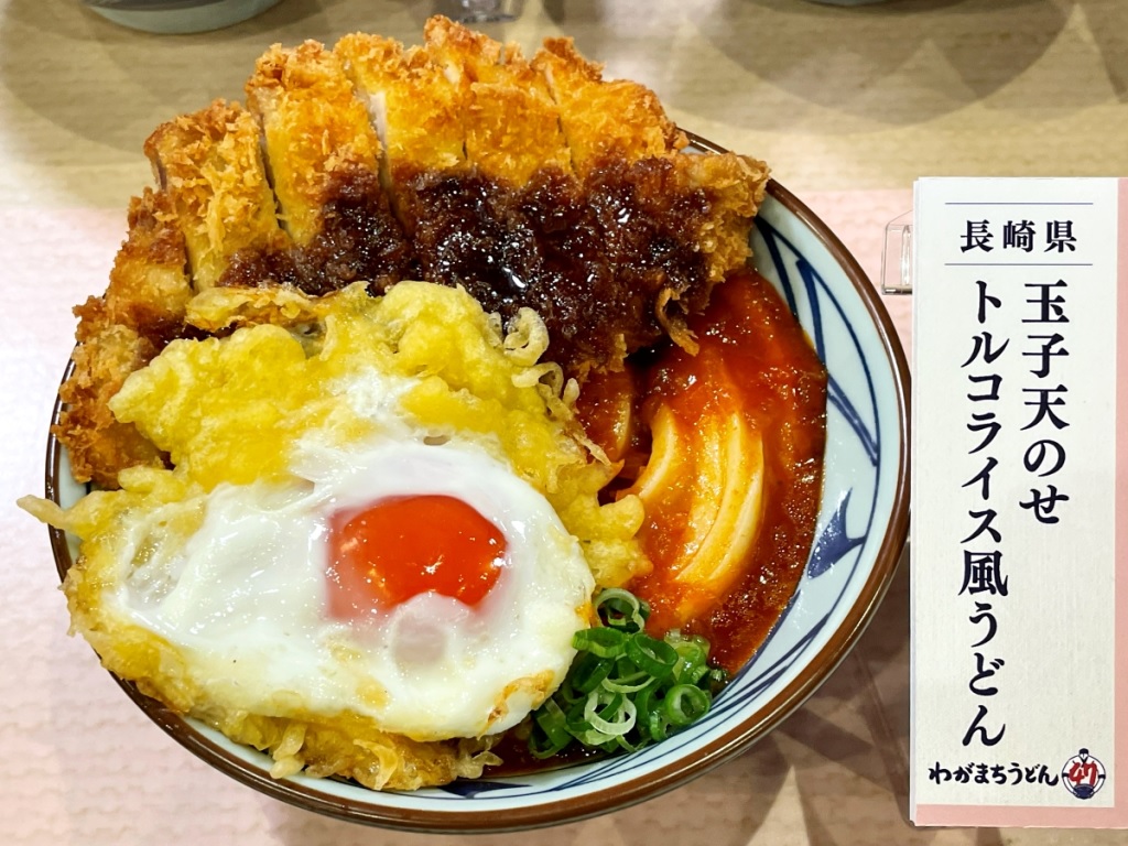 地元のメニューもいいけれど、機会があれば他県のうどんも食べてみたい! そんな折、別件で訪れた長崎県で『玉子天のせトルコライス風うどん』を食べる機会に恵まれた。というか、トルコライス風とは?