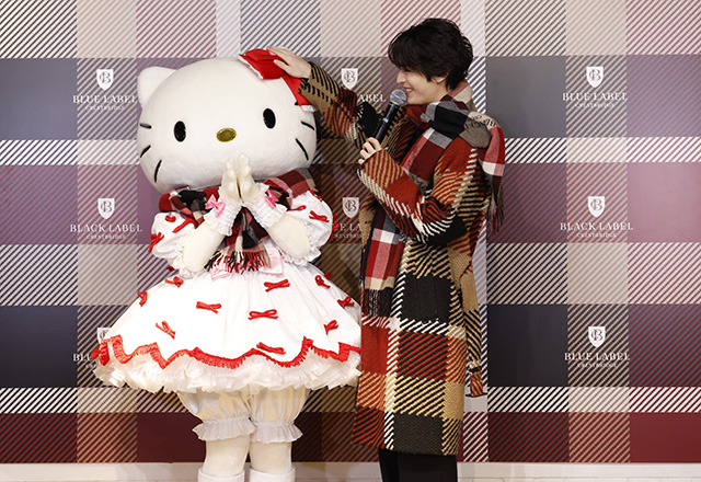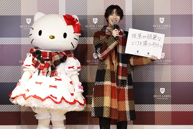 「冬の表参道でイルミネーションを見ながら」と細かいシチュエーションを話すと、「マフラーを巻く」シーンを実際にキティちゃんが実演。