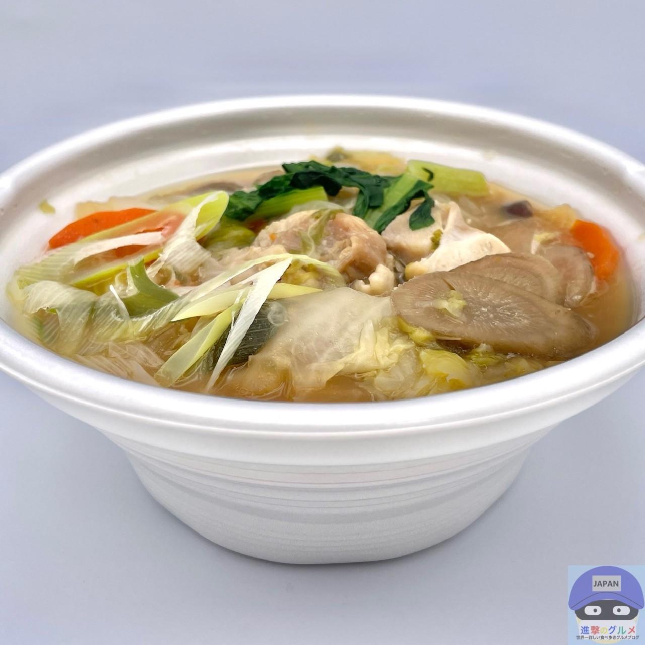 具材は、鶏肉・白菜・大根・ねぎ・にんじん・ごぼう・小松菜・ぶなしめじが入って、みそ汁のような良い香りがします。