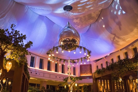 約700個のクリスタルガラスを散りばめた光の球体から普段は目に見えない七色のスペクトルが輝きます。
