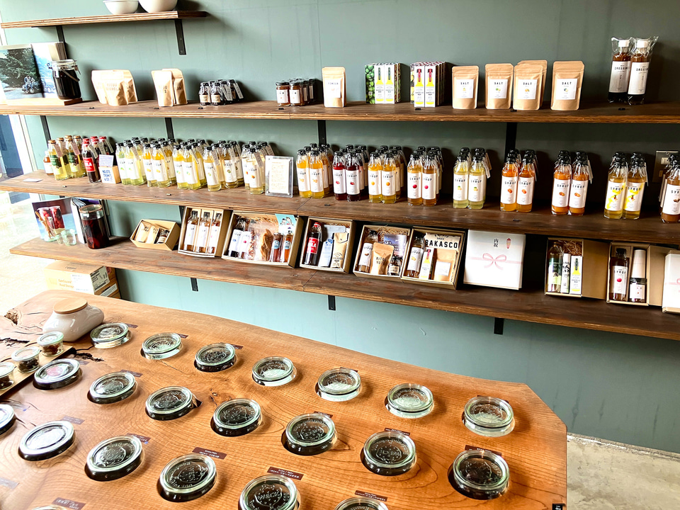 栽培から製造、販売まで徳島産にこだわり、丁寧に手作業で作られています。梨の木のチップでスモークしたミックスナッツや、ワークジャケットも販売されていて、すべてがかっこよく、居るだけで気分があがるお店でした!