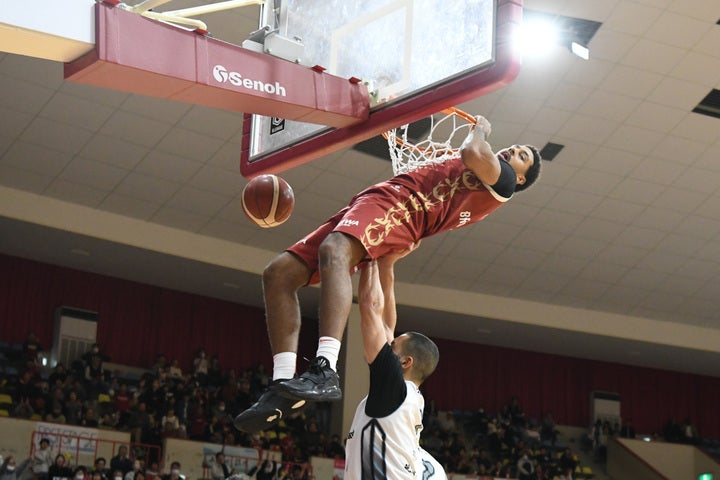 3Q、ブレイクフィールド選手がフル出場で攻撃を牽引します。小林選手の3Pシュートをアシストすれば、今度は反対に小林選手のアシストからスリーを決めます。今度は小林選手、相馬選手とブレイクフィールド選手が連動して得点に成功します。さらに速攻を豪快なトマホークダンクで締めた後、今度は#1 大塚勇人選手と連動して得点。最後は、#7 古牧昌也選手のコーナースリーをお膳立てしました。ブレイクフィールド選手の活躍もあり、68-51とリードを広げて、最終クォーターを迎えます。