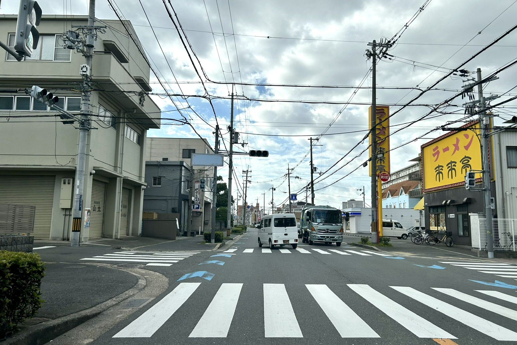正解は、、、〒578-0932 大阪府東大阪市玉串町東3-1付近。府道24号線(大阪東大阪線)の花園住宅前交差点から西へ向かって撮影しました。右前方は「来来亭 玉串店」です。背中側にしばらく行くと国道170号線(大阪外環状線)と交わる六万寺交差点に。ずっと真っ直ぐ行くと府道2号線(大阪中央環状線)と交わる巨摩橋東交差点に出ます。