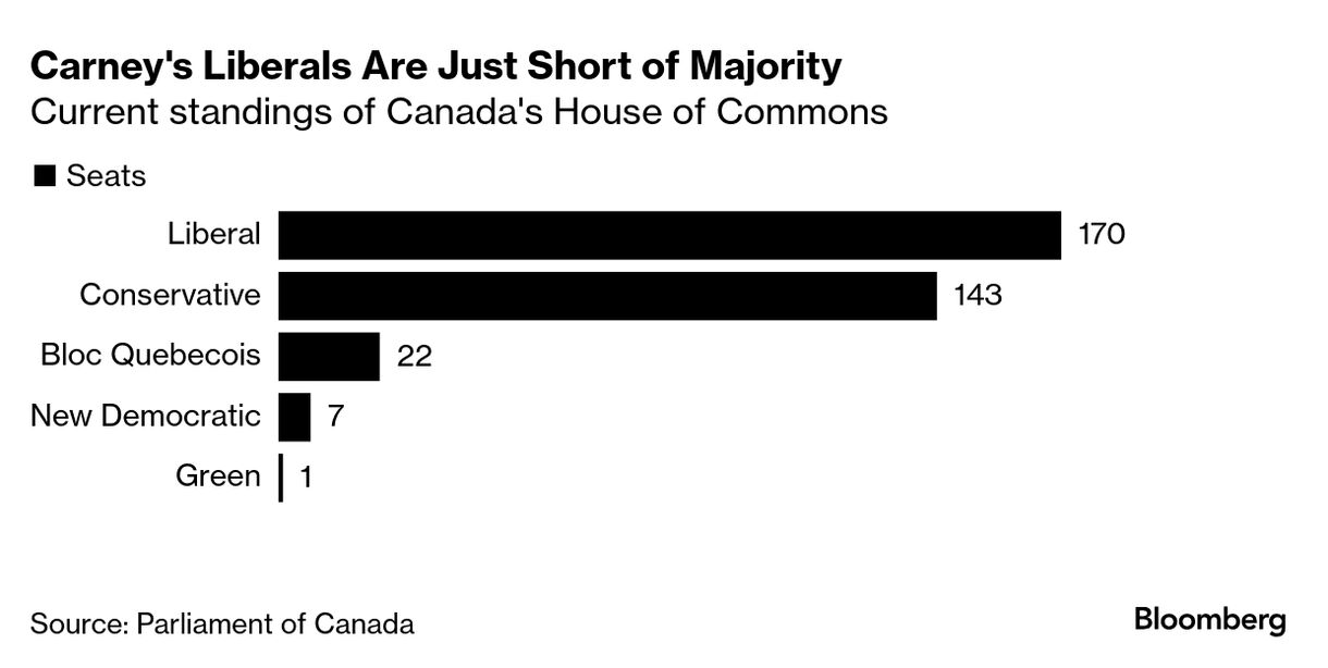 新たな選挙の回避には予算案の可決が必要。カーニー首相率いる与党・自由党の保有議席数は170で、過半数まで2議席足りない。16日午前の時点で、野党各党の動向はまだ不透明だ。