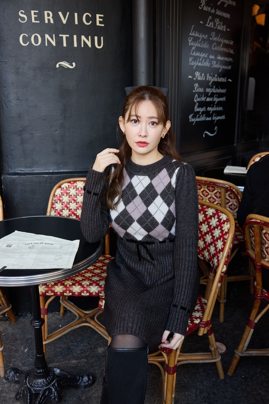 Moor Argyle Ribbon Knit Dress ¥24,500 tax in