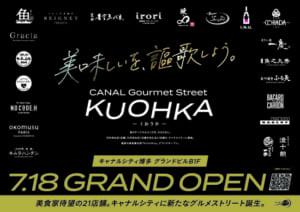 キャナルシティ博多は、7月18日(金)グランドビルB1Fに新たなグルメストリート「CANAL Gourmet Street『KUOHKA(くおうか)』」をオープンします。本記事では、出店店舗も紹介します。