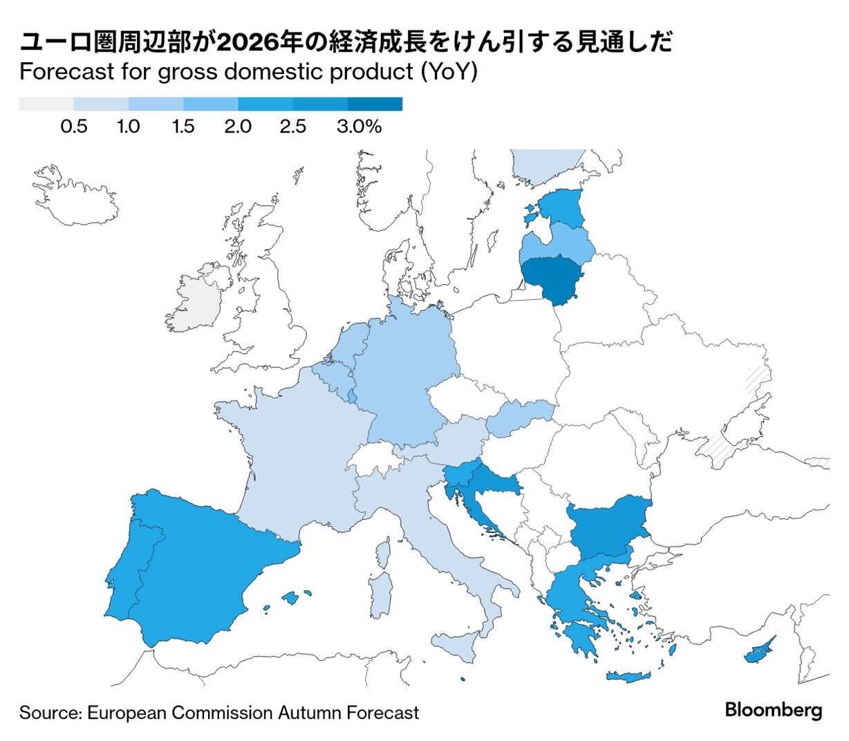 原題:Euro Zone Set for Moderate Growth After 2025 Resilience, EU Says(抜粋)