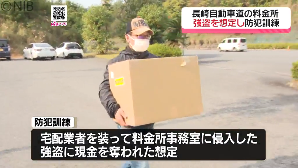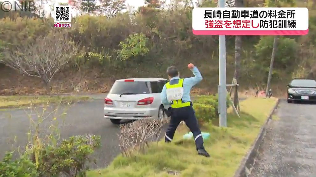 長崎自動車道の、長崎多良見料金所で行われた防犯訓練。