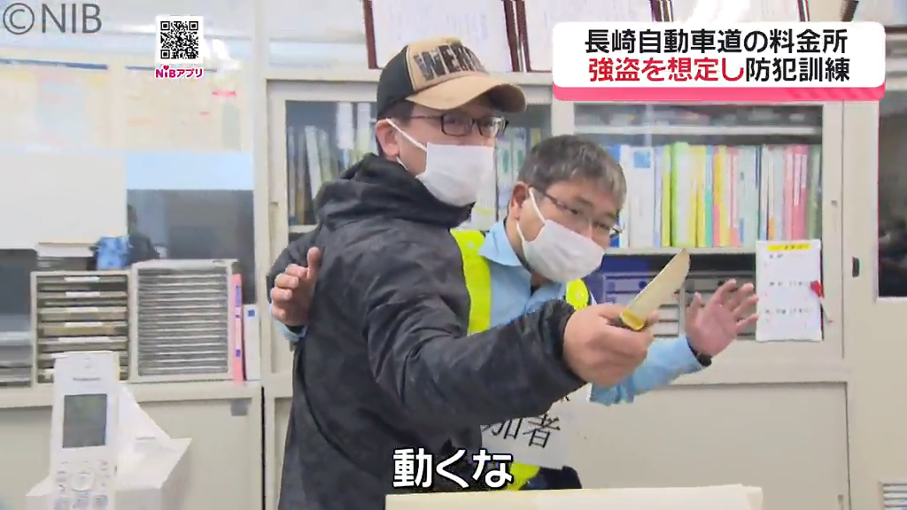 高速道路の料金所で、強盗を想定した防犯訓練が行われました。