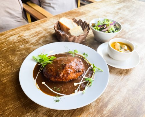 お店の人気メニュー「ハンバーグランチ」をオーダー。